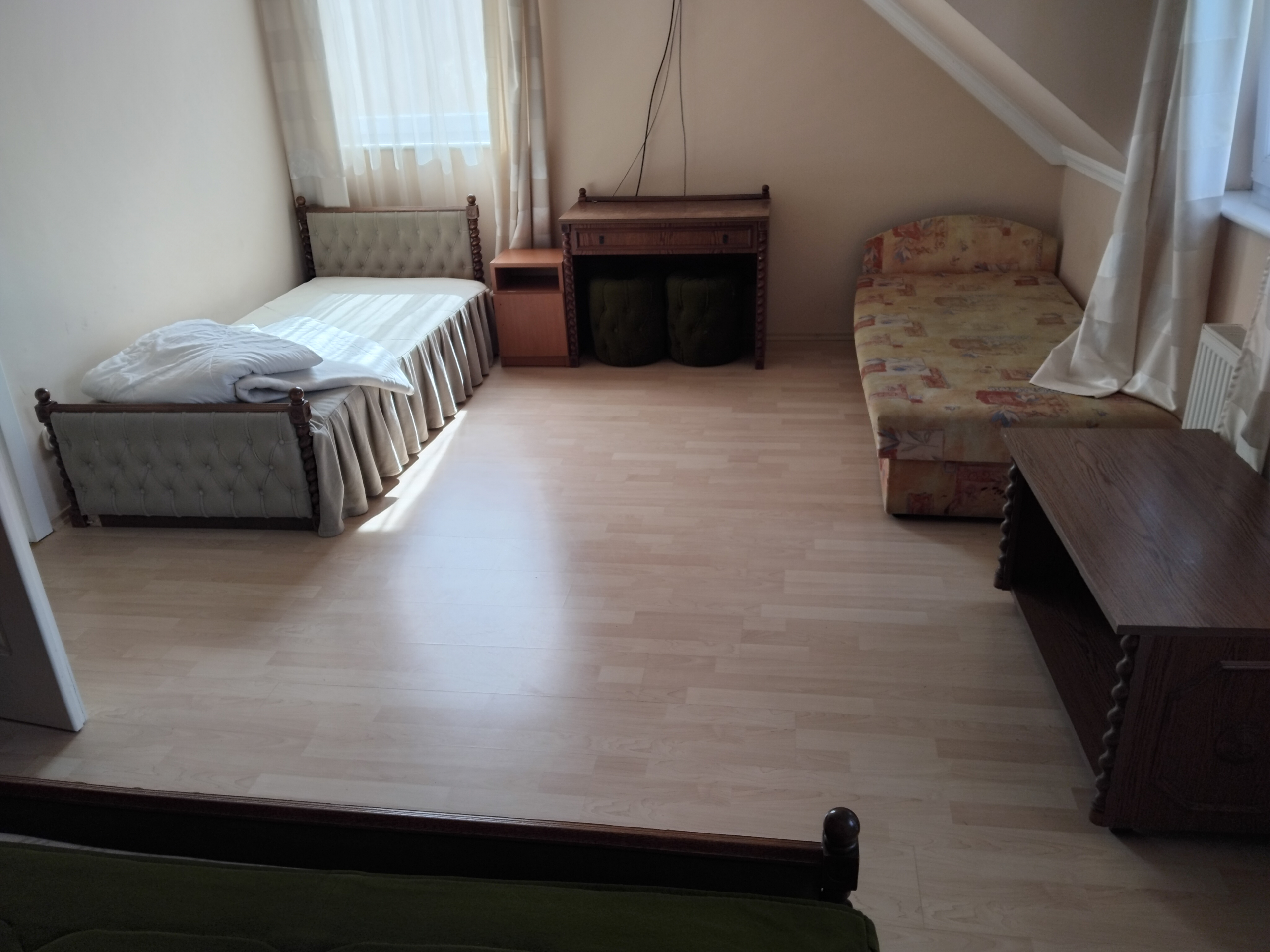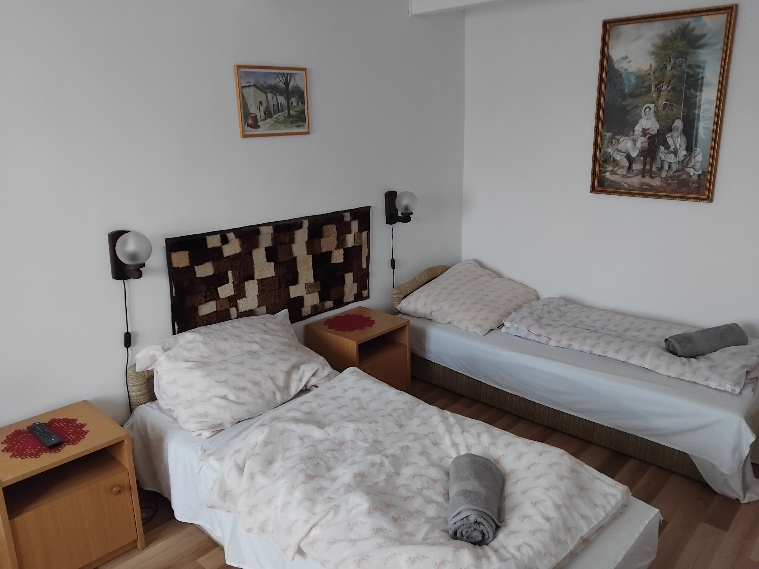 Hátsó apartman 1 hálószoba (3 fős), középső apartman 1 hálószobás (3 fős), emeleti apartman 3 hálószoba (2 + 2 + 3 fős).