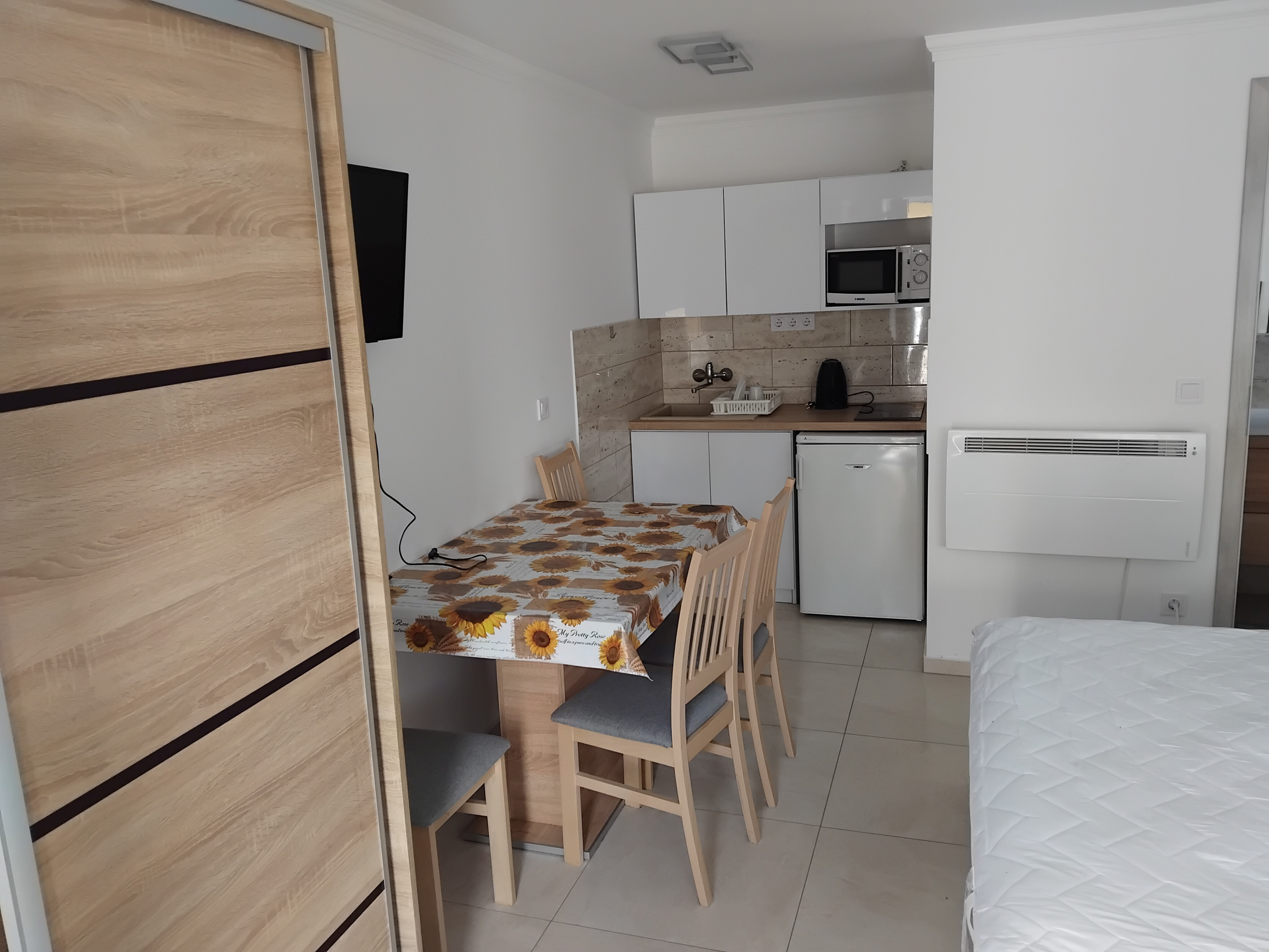 Az ingatlanban 4 db egy hálószobás apartman és 1 db két hálószobás apartman található.