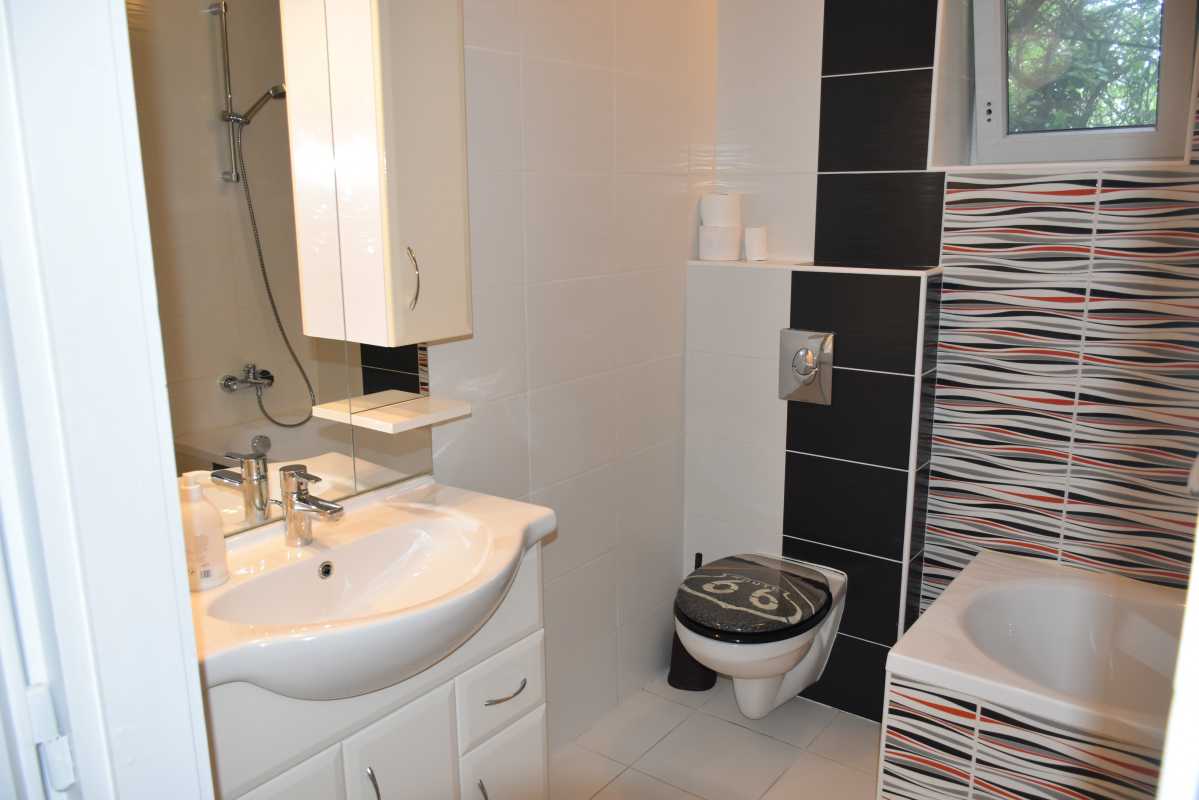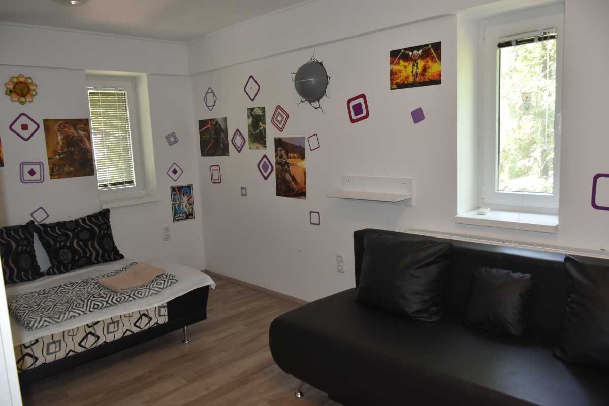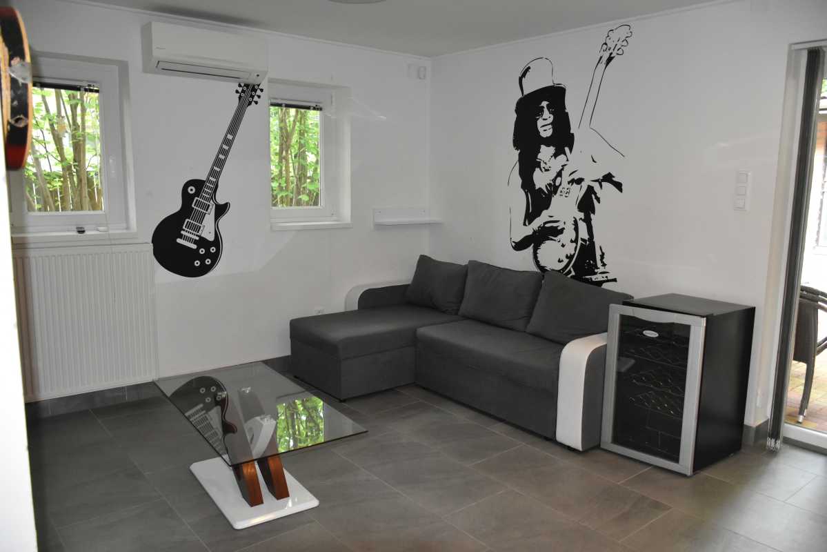 A házban összesen három hálószoba, egy plusz hálótér, valamint két fürdőszoba található (zuhany a földszinten, kád az emeleten). A nagy nappali remek helyszín az esti beszélgetésekhez vagy akár kisebb bulikhoz.