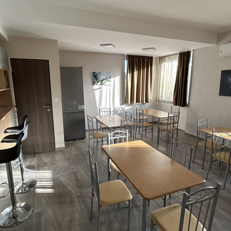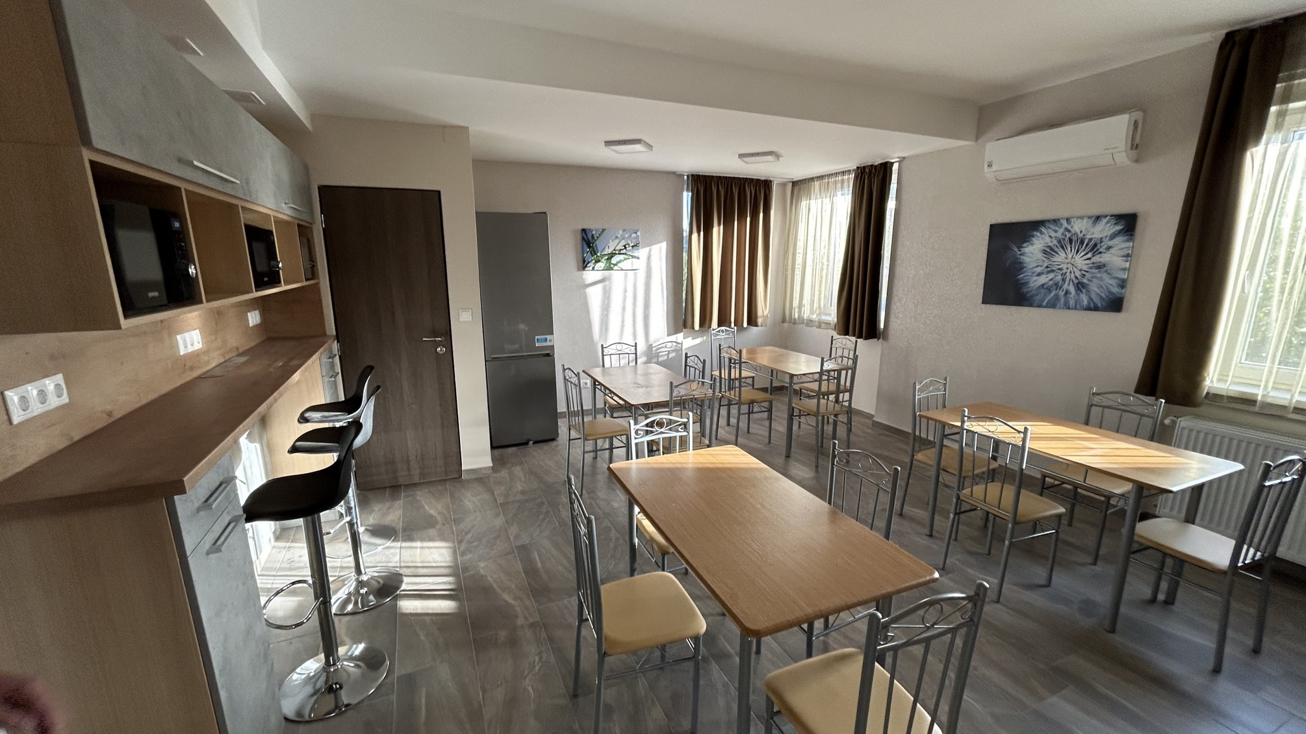 A vendégek kényelmét egy 16 fős étkezővel rendelkező közös konyha, valamint külön mosókonyha szolgálja. Az épület teljes területén internet elérhető, a biztonságról telepített riasztórendszer gondoskodik. Parkolás: a belső udvarban 6 autó, a ház előtt további 4–5 gépjármű számára van hely.