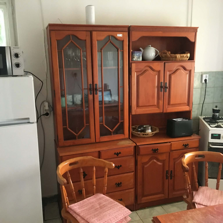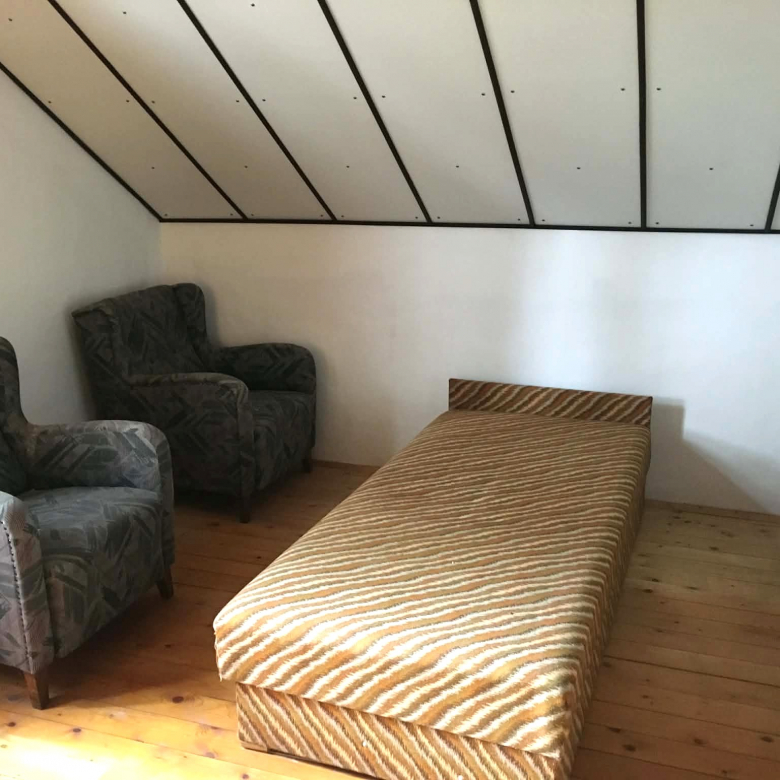 - Emelet: 2 db 2 ágyas szoba, 1 db fekvőhely a galérián, 1 db fürdőszoba wc-vel, étkező, konyha, erkély